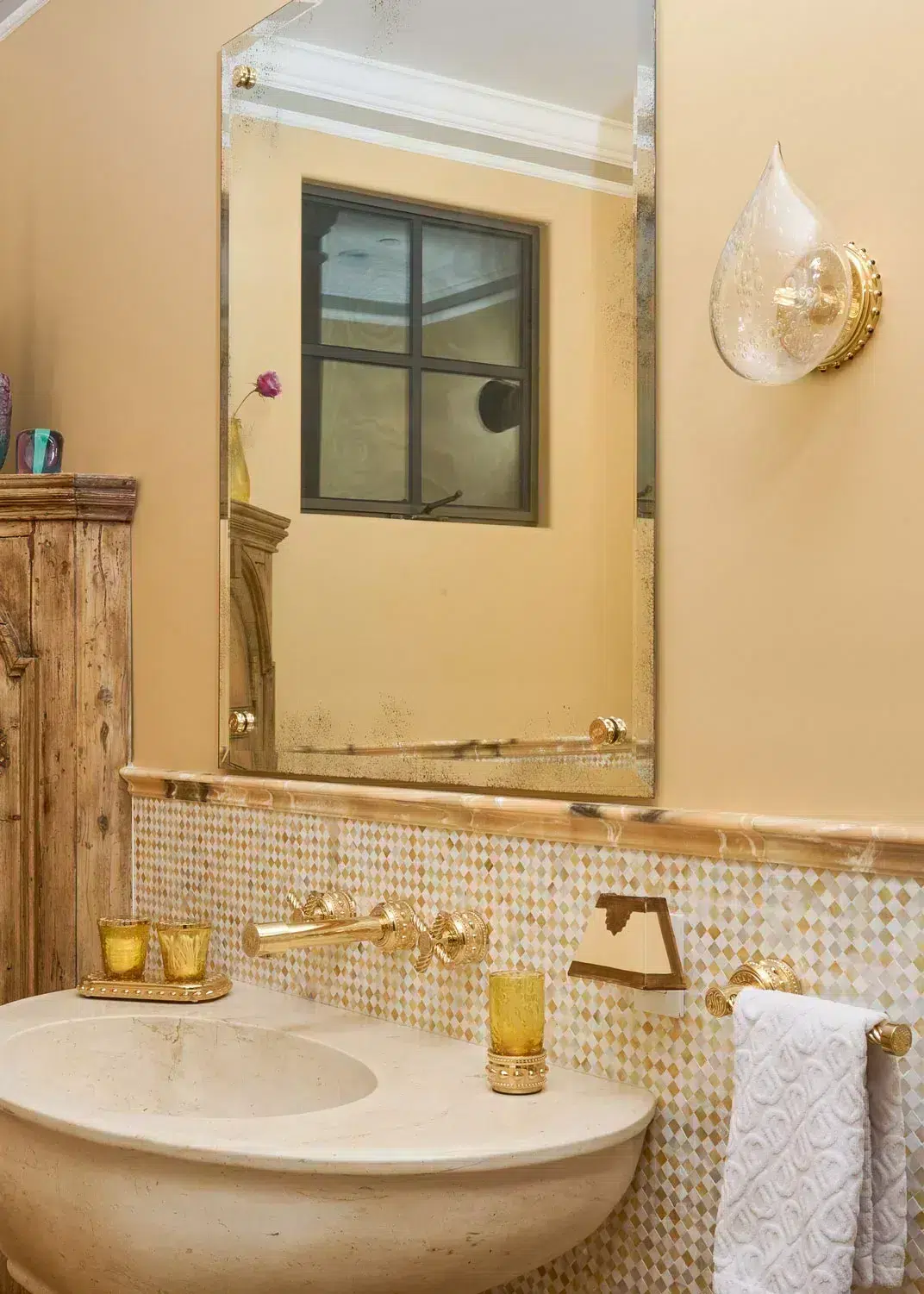 Antique Gold Bordered Beveled-Edge Floating Mirror with Purity Jewelry Mounting Set