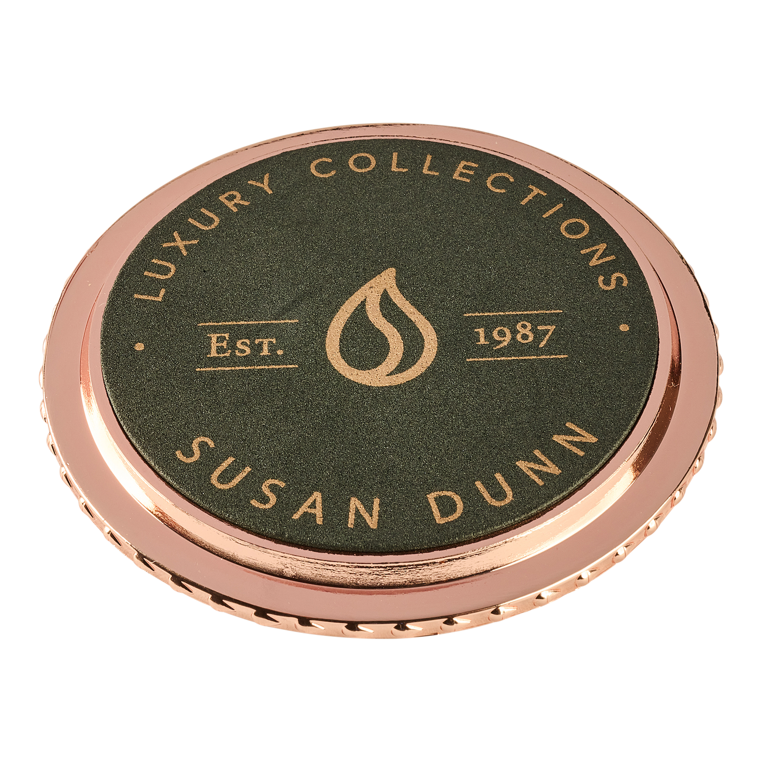 Estimated Processing: 3 Days- Includes a Set of Six Susan Dunn Signature Coasters in Rose Gold.